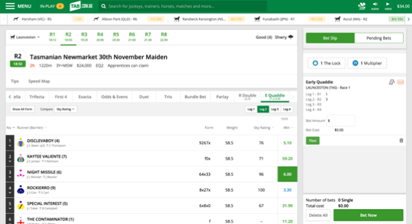 When placing an ‘Early Quaddie’, you must select at least one runner in each race/leg. The more runners you select per race/leg, the higher the cost of your ‘Quaddie’ bet will be.